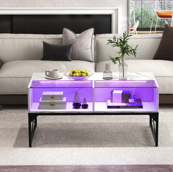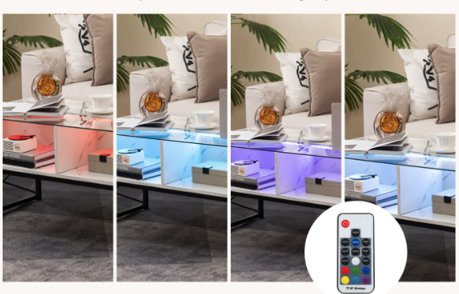 Цей журнальний стіл із підсвіткою обладнаний вбудованим LED-освітленням, яким можна керувати за допомогою пульта. Вибирайте серед 20 статичних кольорів, 22 динамічні режими, настроюйте яскравість (5 рівнів) і швидкість анімації (10 рівнів). Міняйте атмосферу кімнати за секунду — від романтичної до футуристичної.