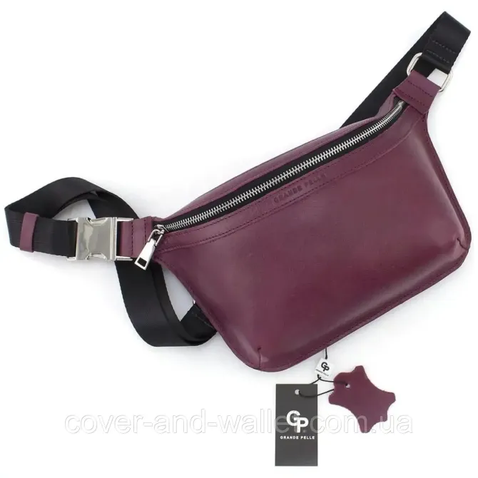 Стильная женская сумка на пояс бордового цвета из гладкой кожи Grande Pelle 743661 купить в Киев по цене 3 000 грн. Номер предложения 641247 на сайте DOMARKET. Стильная и функциональная сумка для современных и активных людей. Внутреннее пространство оборудовано удобным карманом, идеально подходящим для...