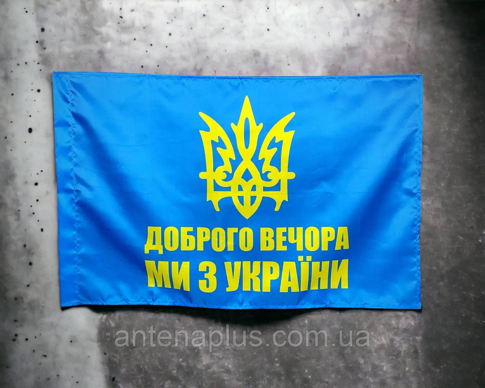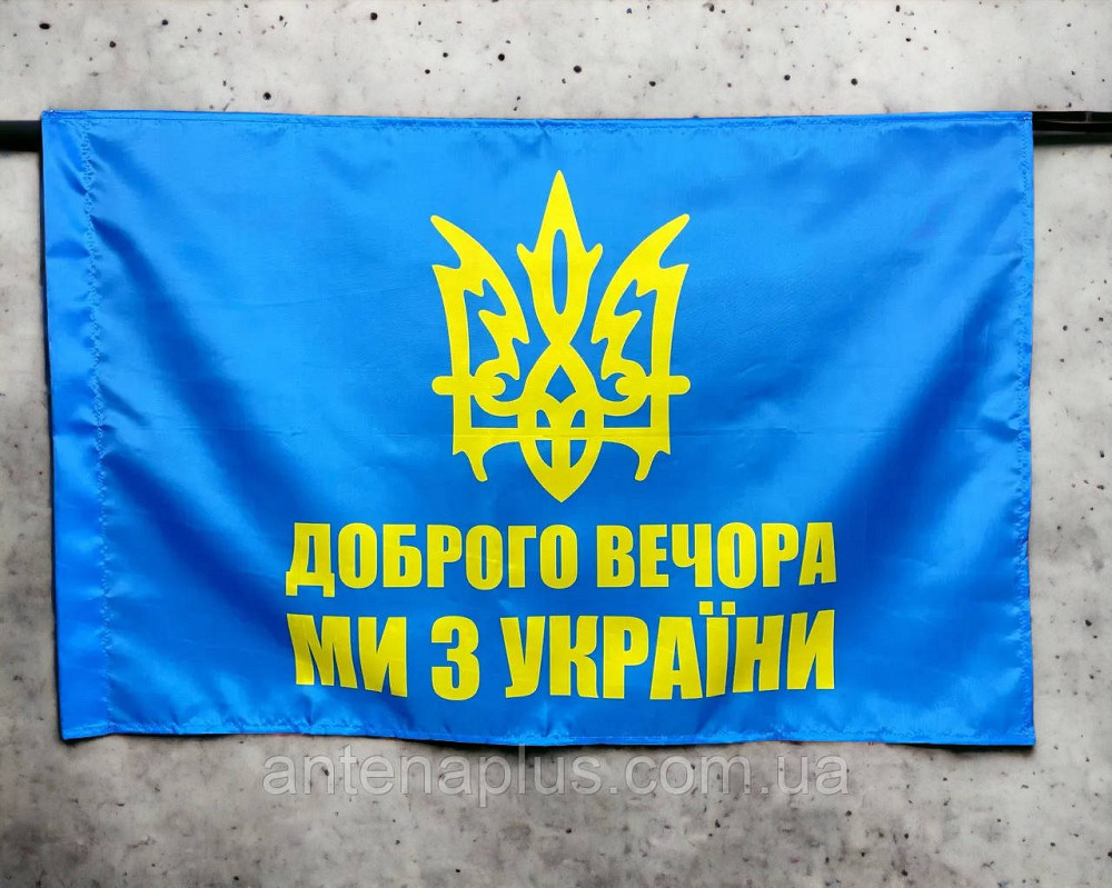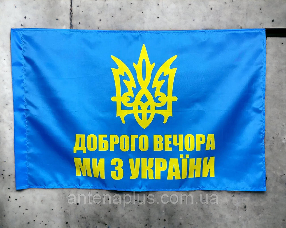 "Добрый вечер - мы из Украины" флаг 600х900 мм купить в Киев по цене 1 199 грн. Номер предложения 2160907 на сайте DOMARKET. "Добрый вечер - мы из Украины" флаг 600х900 мм Наши флаги созданы с помощью передовой технологии сублимационной печати, благодаря чему отличаются...