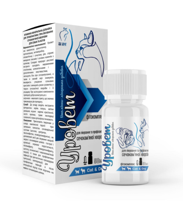 Витаминно-минеральная добавка УРОВЕТ рекомендована для профилактики и, как вспомогательное средство, при лечении мочекаменной болезни у собак и котов.