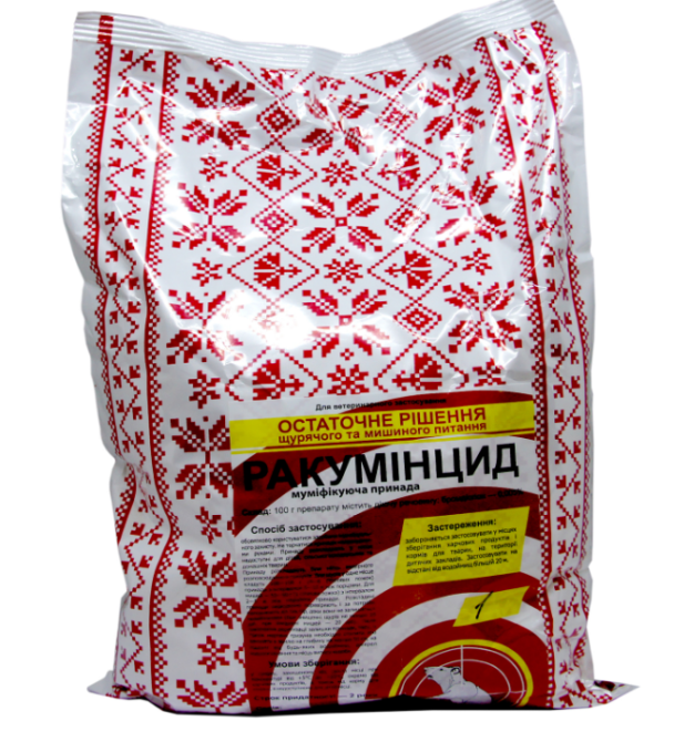 "Ракуминцид" - высокоэффективная отрава для мышей и крыс, 1 кг (Круг) купить в Винница по цене 57 грн. Номер предложения 888714 на сайте DOMARKET. СОСТАВ действующее вещество (бромадиолон) – 0,005%; наполнитель (зерно пшеницы или ячменя) – до 100 %. ФАРМАКОЛОГИЧЕСКИЕ СВОЙСТВА Бромадиолон –...