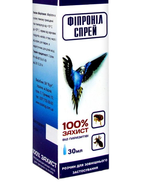 Срок действия препарата «Фипронил» для птиц и грызунов составляет: при однократном применении от блох 50-60 дней, от клещей 30 суток.