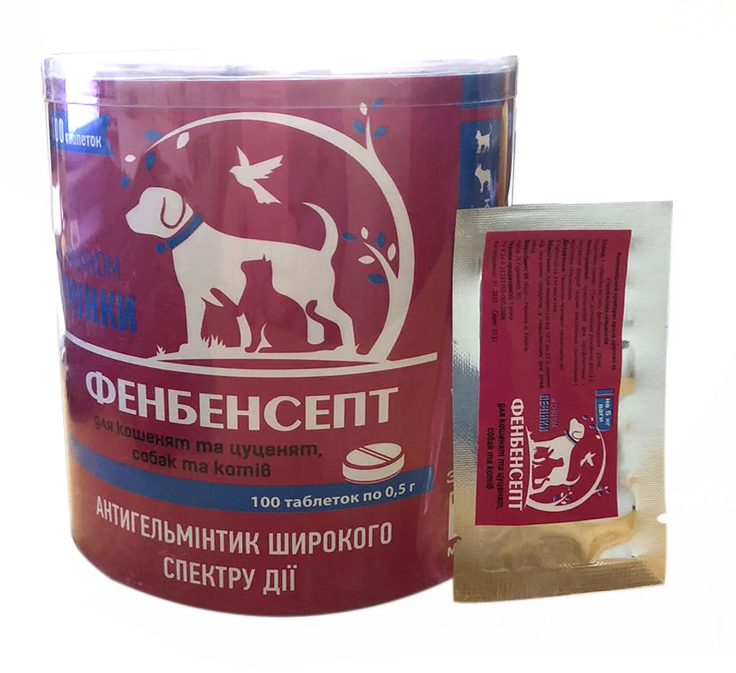 "ФЕНБЕНСЕПТ" - комплексный антигельминтный препарат для собак и котов, щенков, котят, на 5 кг №100 (Круг) купить в Винница по цене 928 грн. Номер предложения 888778 на сайте DOMARKET. Состав 1 таблетка (0,5 г.) содержит: фенбендазол — 250 мг.; пирантела памоат — 75 мг.; наполнитель — до 0,5 г. Фармакологические свойства Препарат...