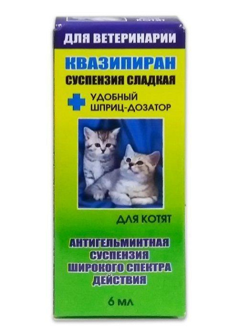 "Квазипиран" суспензия для котят от глистов (6 мл), Норис купить в Винница по цене 52 грн. Номер предложения 889579 на сайте DOMARKET. Квазипиран суспензия сладкая для котят, 6 мл. Антигельминтная взвесь широкого спектра действия. Состав 1 мл содержит: пирантела памоат – 15 мг,...