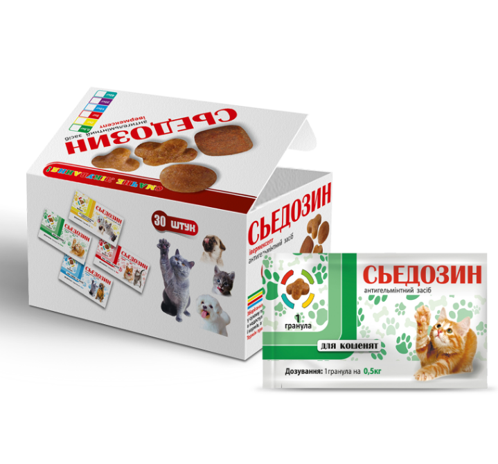 "Сьедозин" - антигельминтное средство для котят 0.5 кг (1 гранула), Круг купить в Винница по цене 5 грн. Номер предложения 888739 на сайте DOMARKET. СОСТАВ В 1 грануле содержится: ивермектин — 0,1 мг. ПРИМЕНЕНИЕ Препарат применяется для профилактики и лечения смешанных цестодных, нематодных...